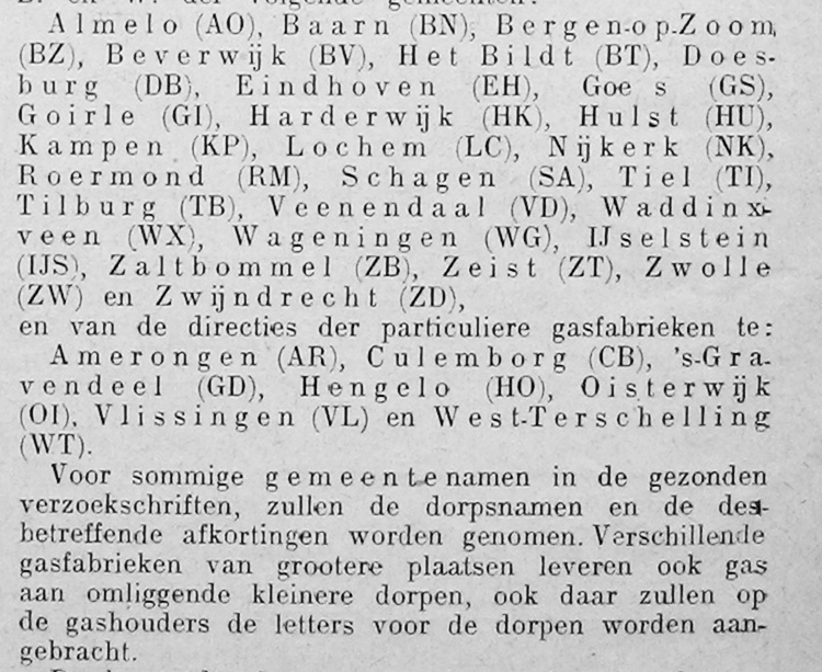 Lijst met markeringen op gashouders zoals gepubliceerd in De Kampioen in juli 1914