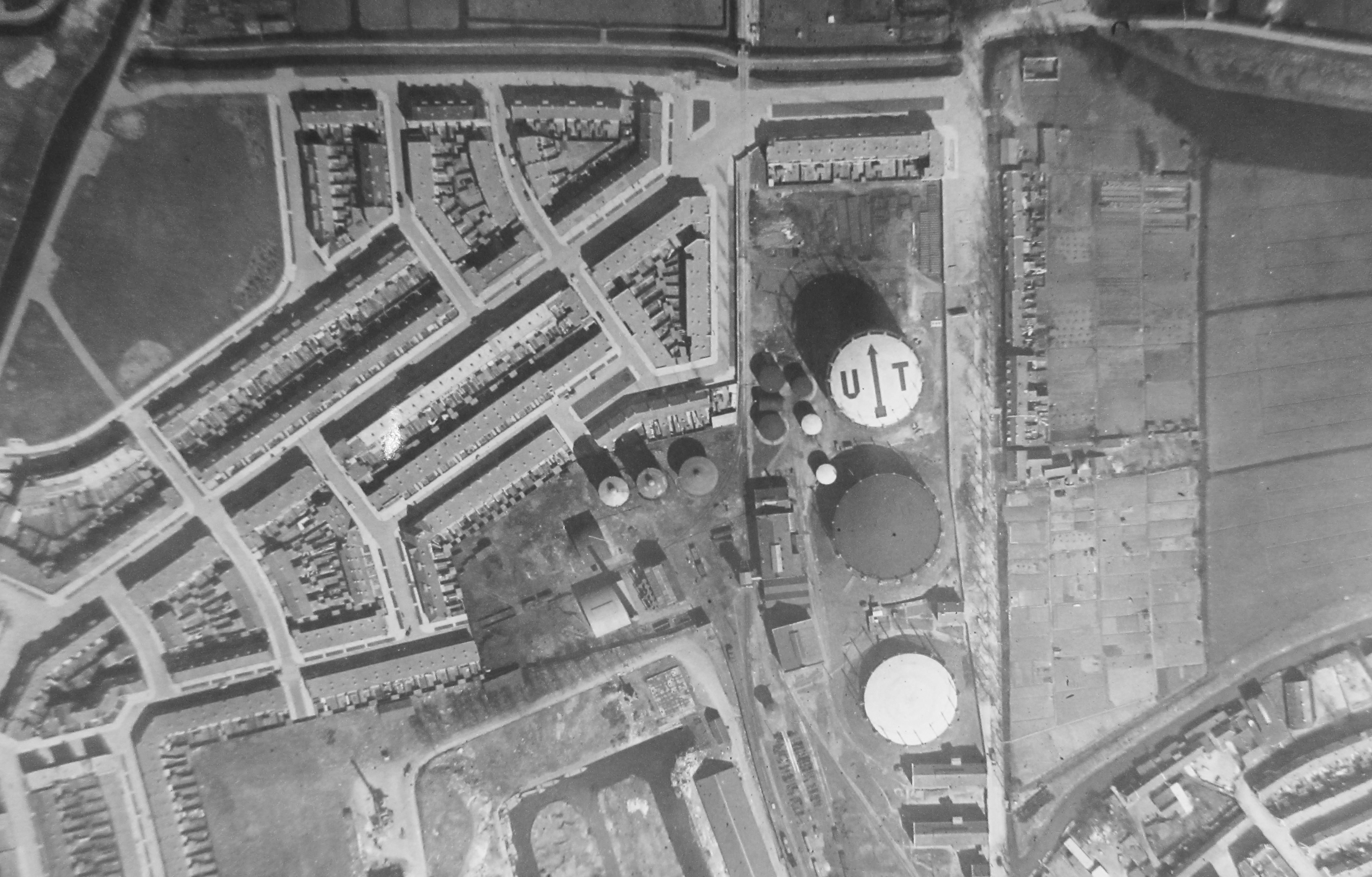 van het door dhr. Lugard ontworpen markeringssysteem voor gashouders, ter orientatie van vliegeniers, wordt beschreven.